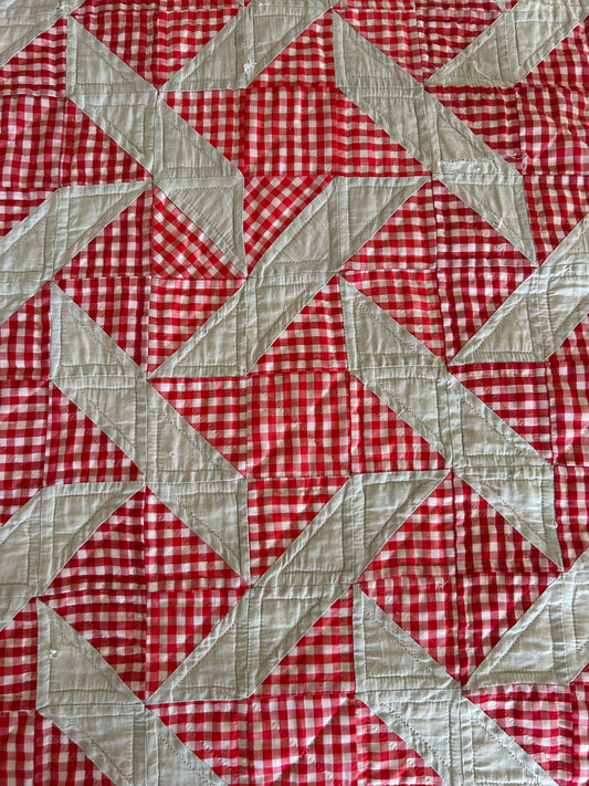 Khaki Gingham Pinwheel Picnic Quilt | 1950s