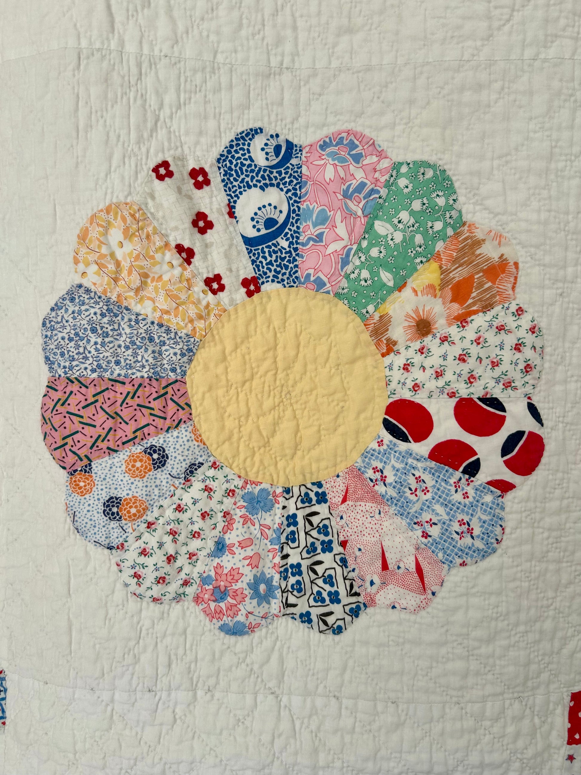 Pattern: Dresden Plate with ice cream cone border and 4-patch accents