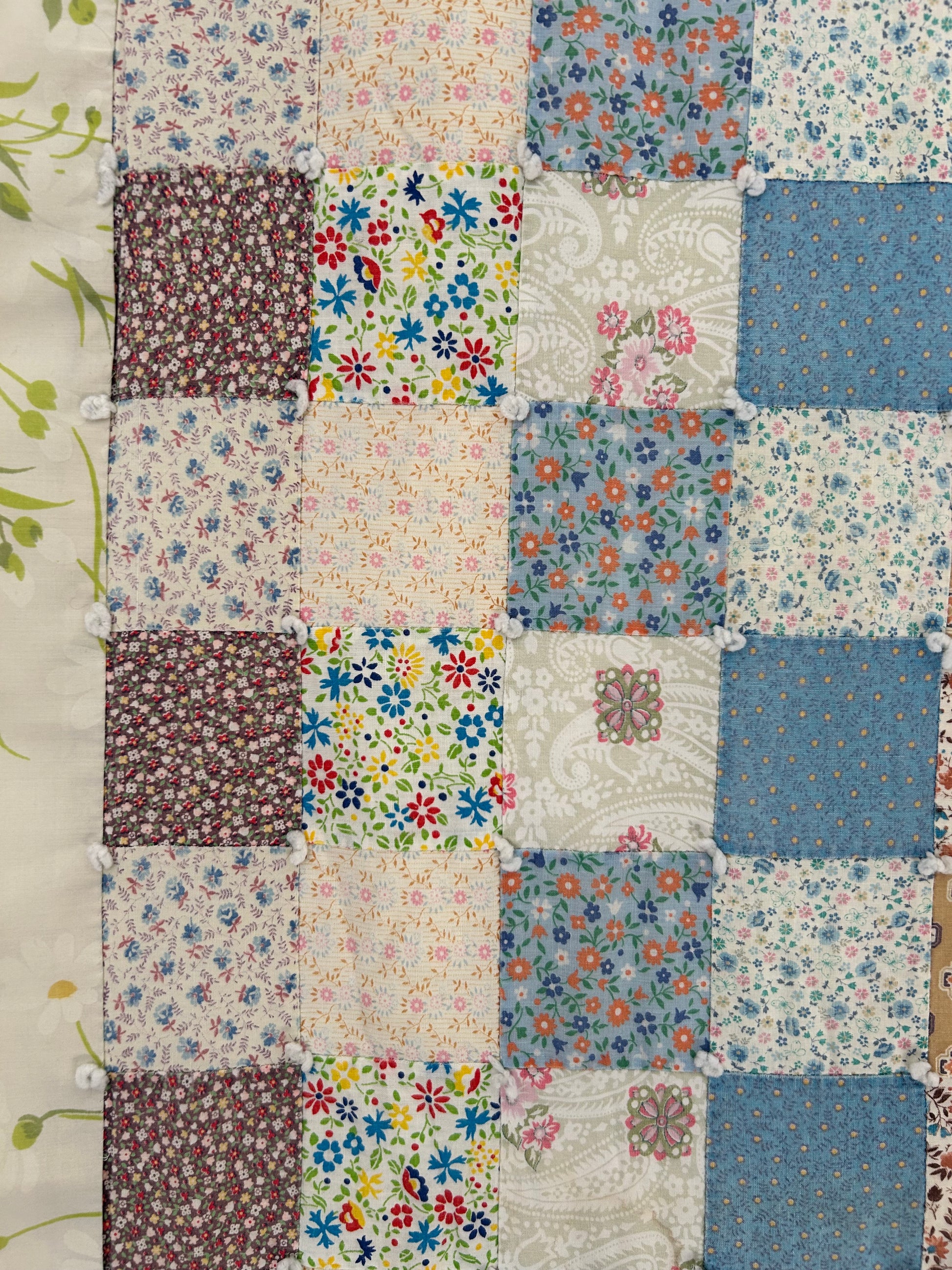 Material: Hand tied; bedsheet backing and binding