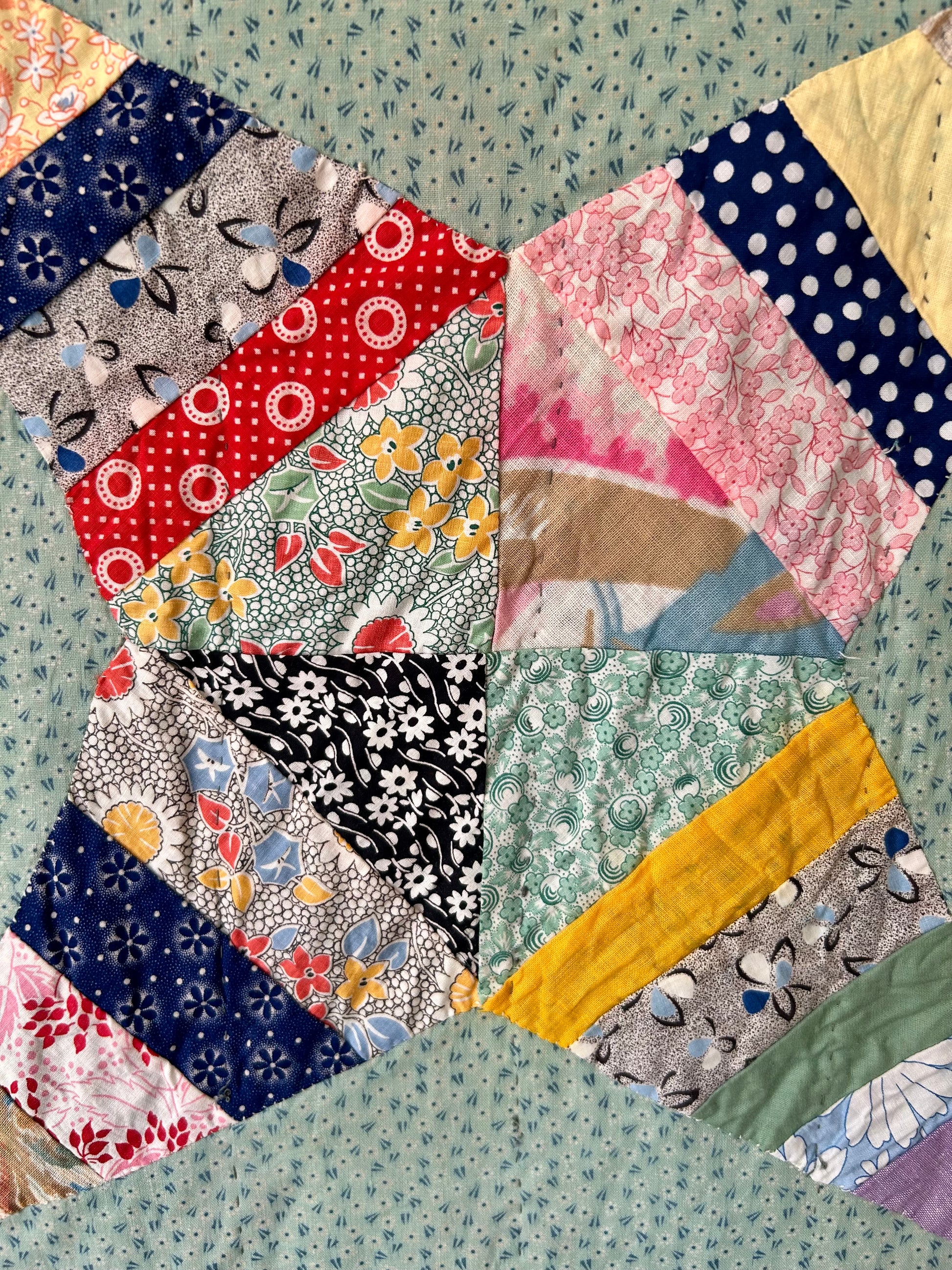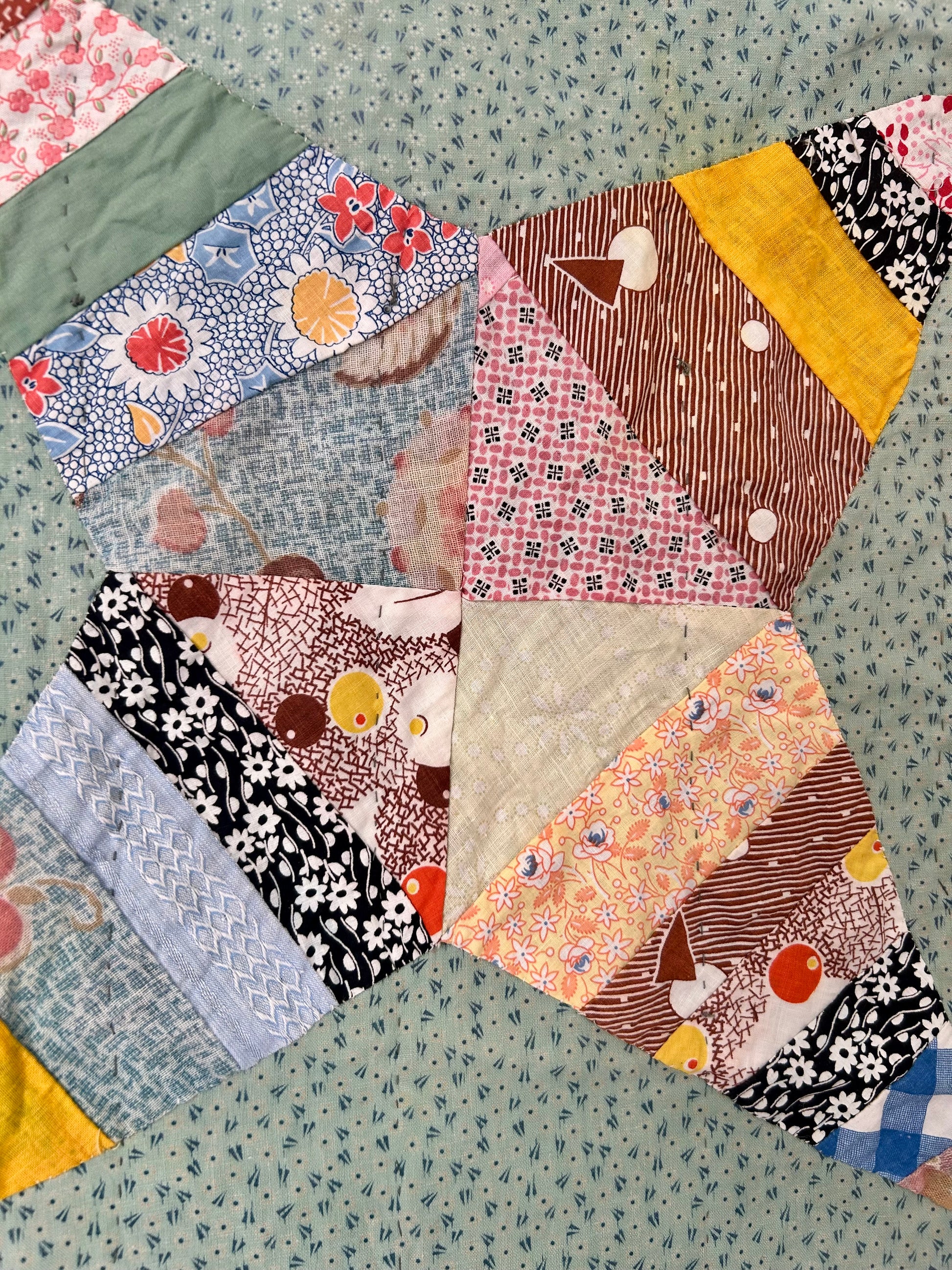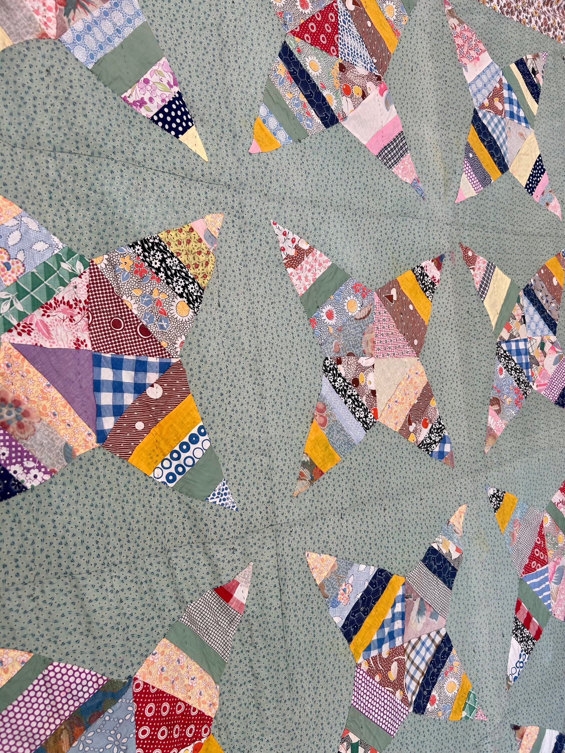 Green Rocky Road to Kansas Quilt | 1970s
