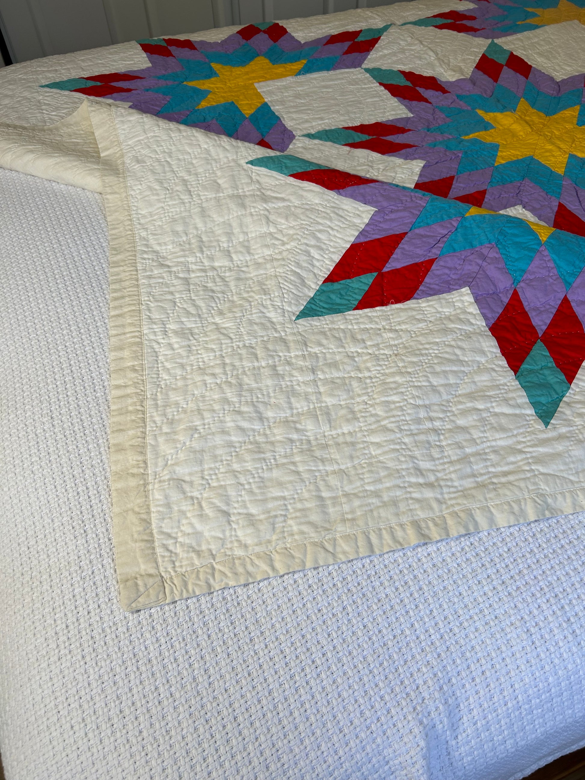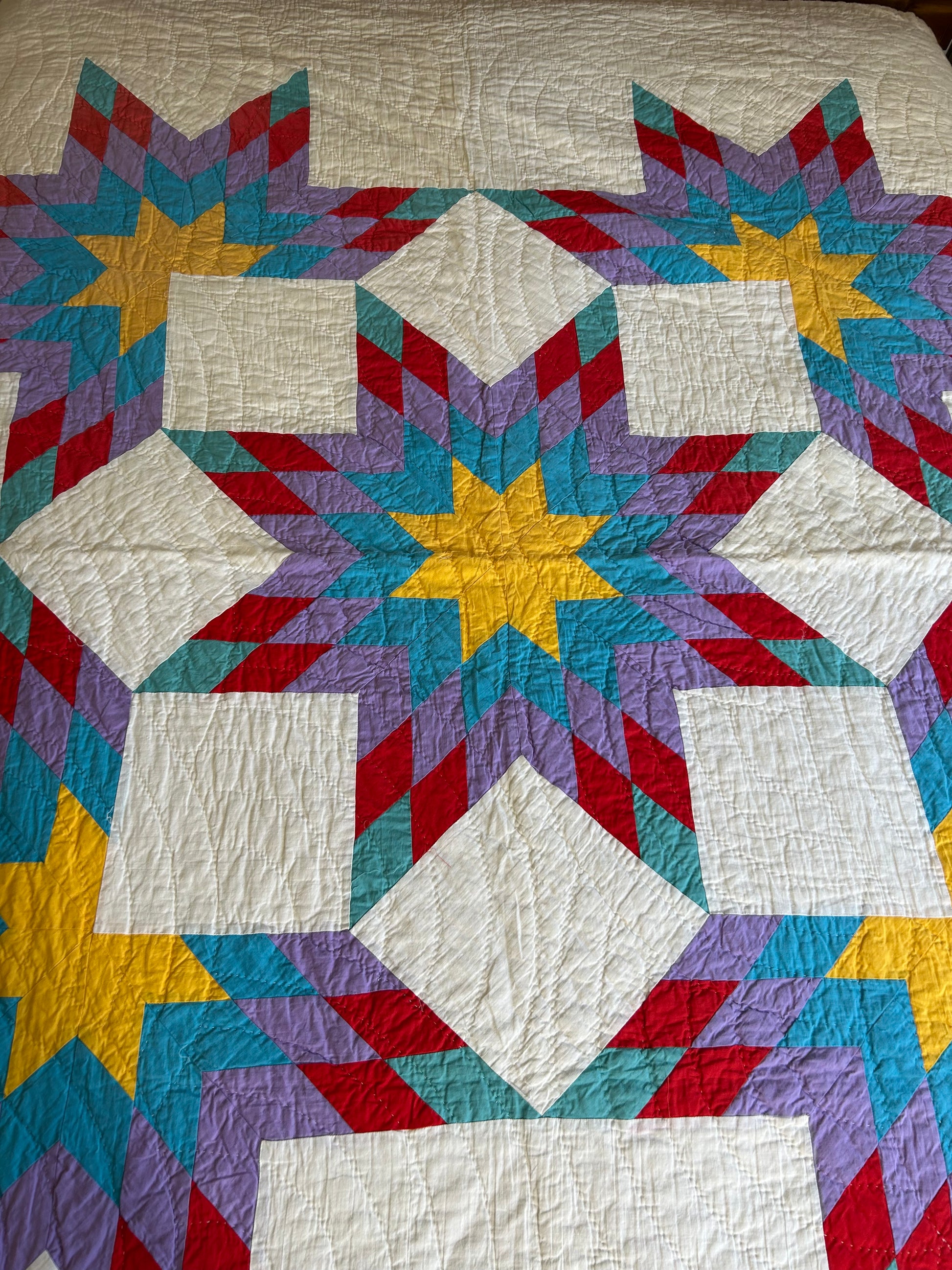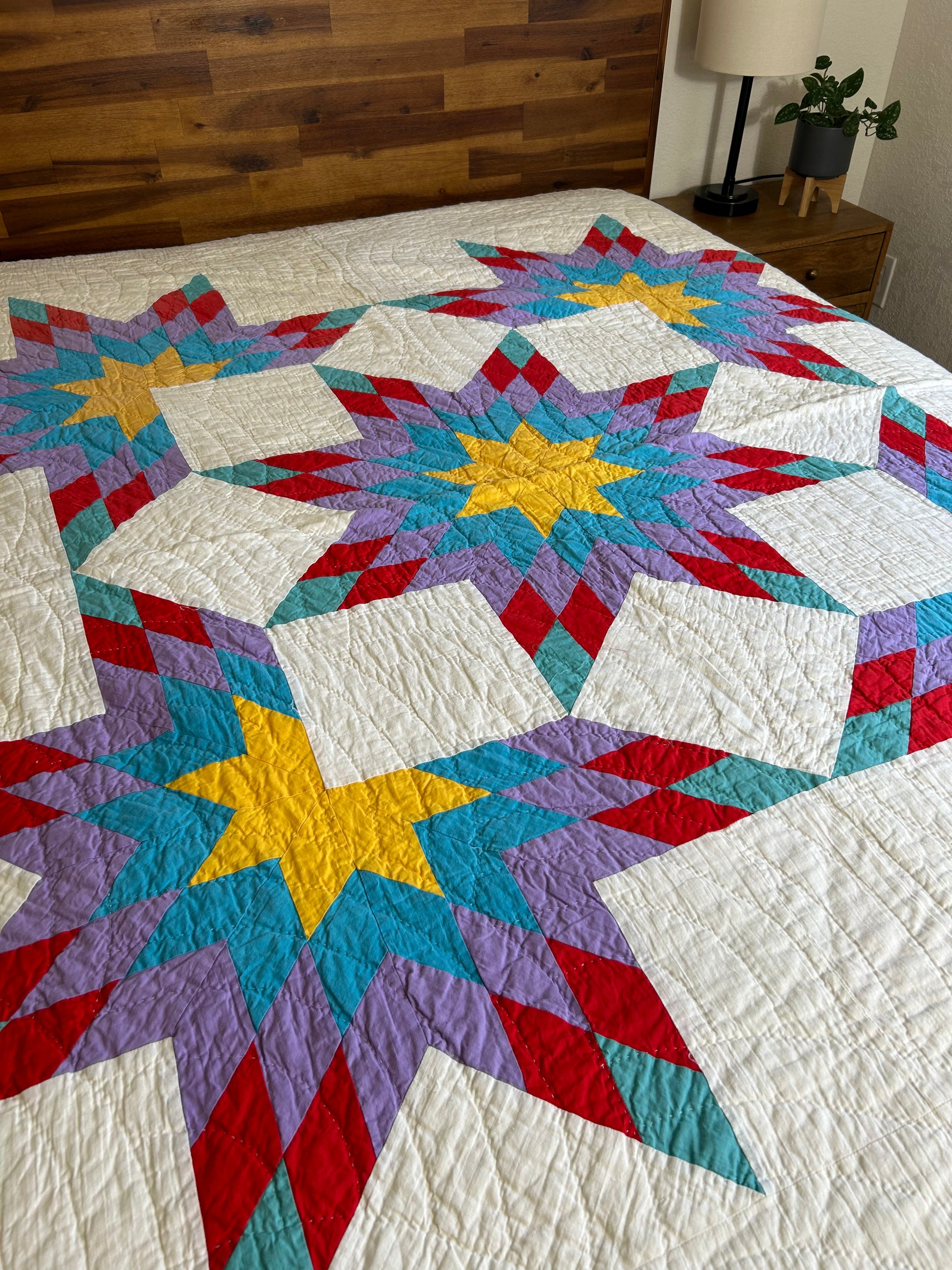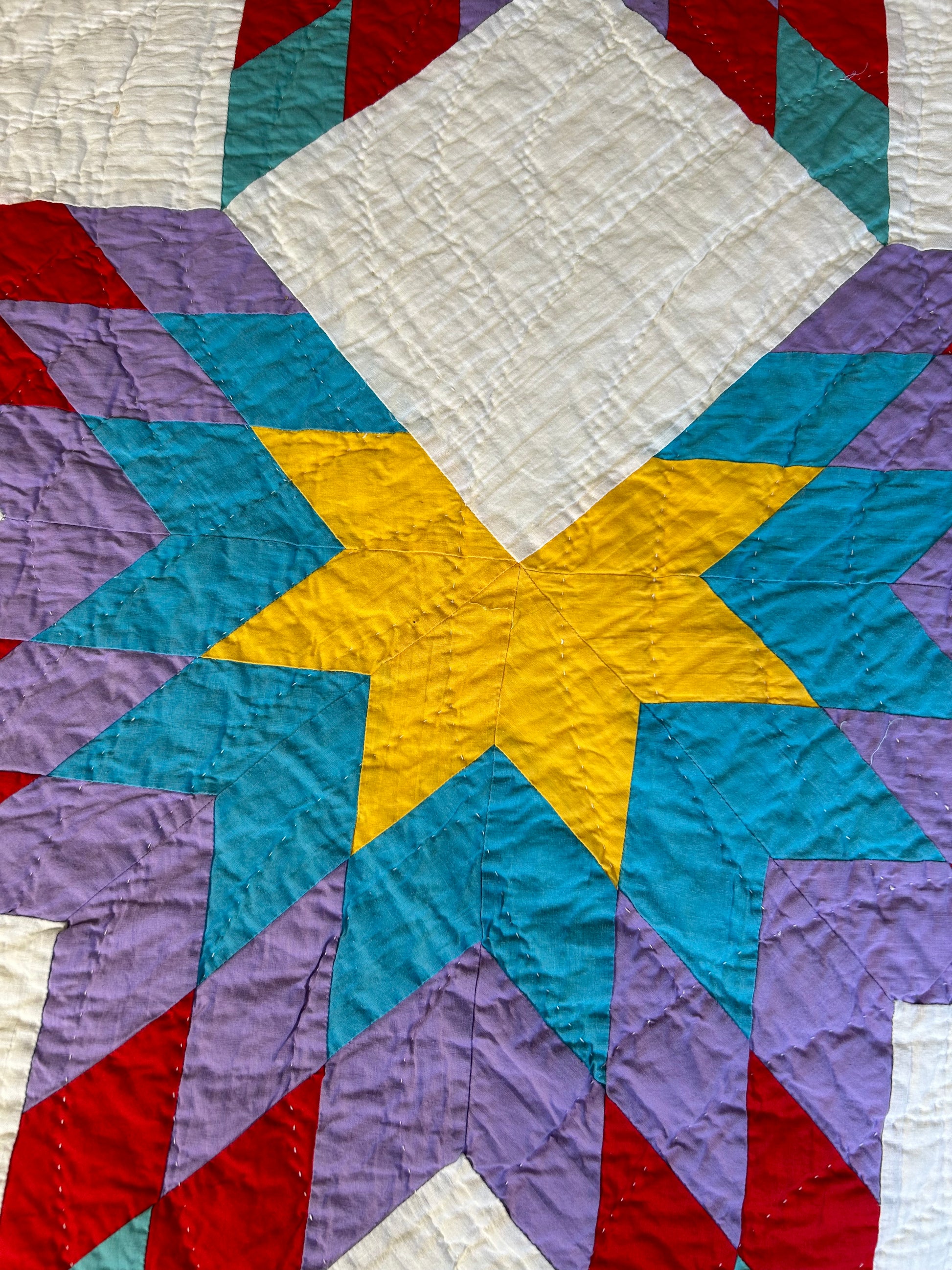 Pattern: Broken Star with Baptist fan quilting on the reverse side