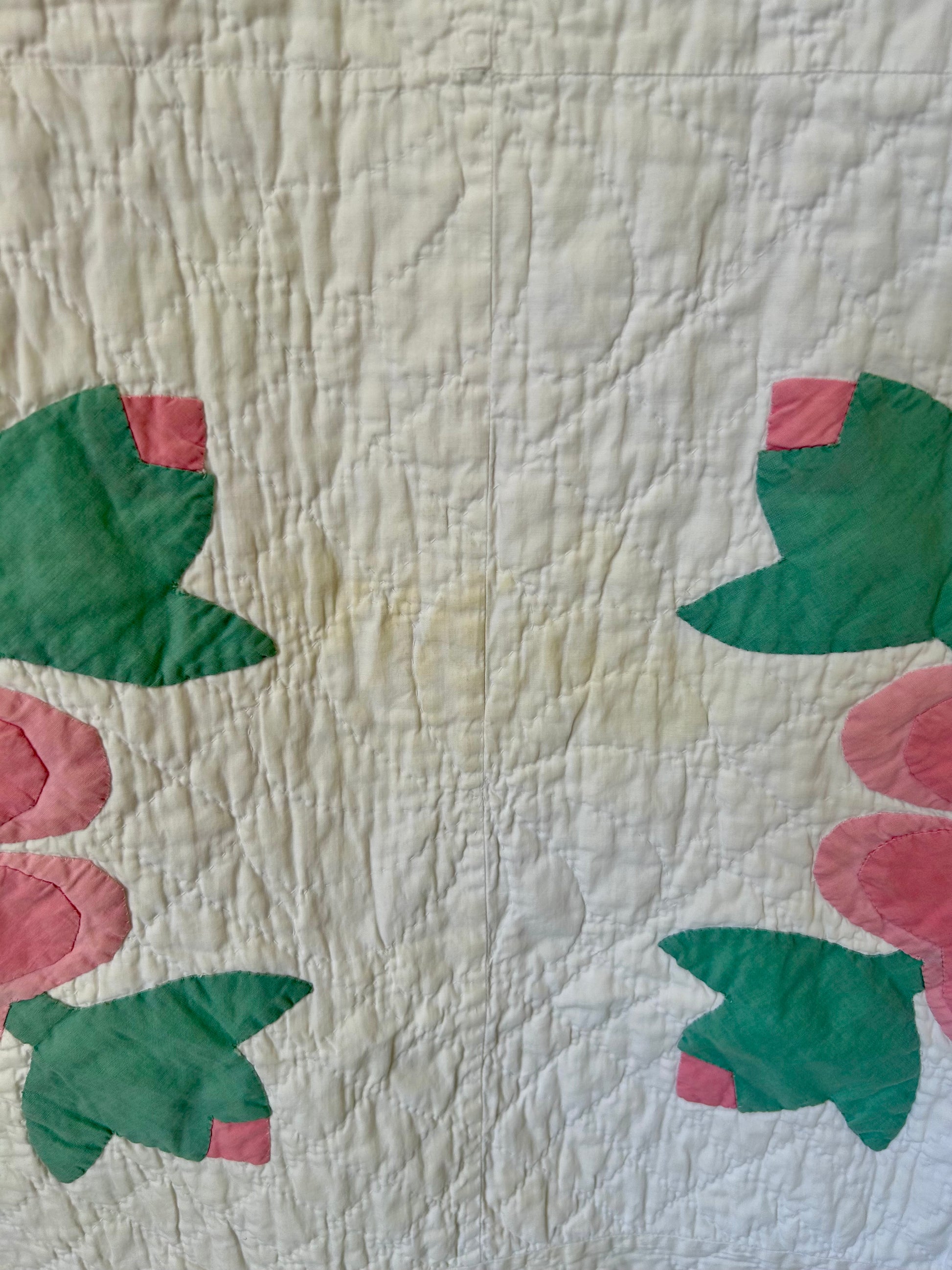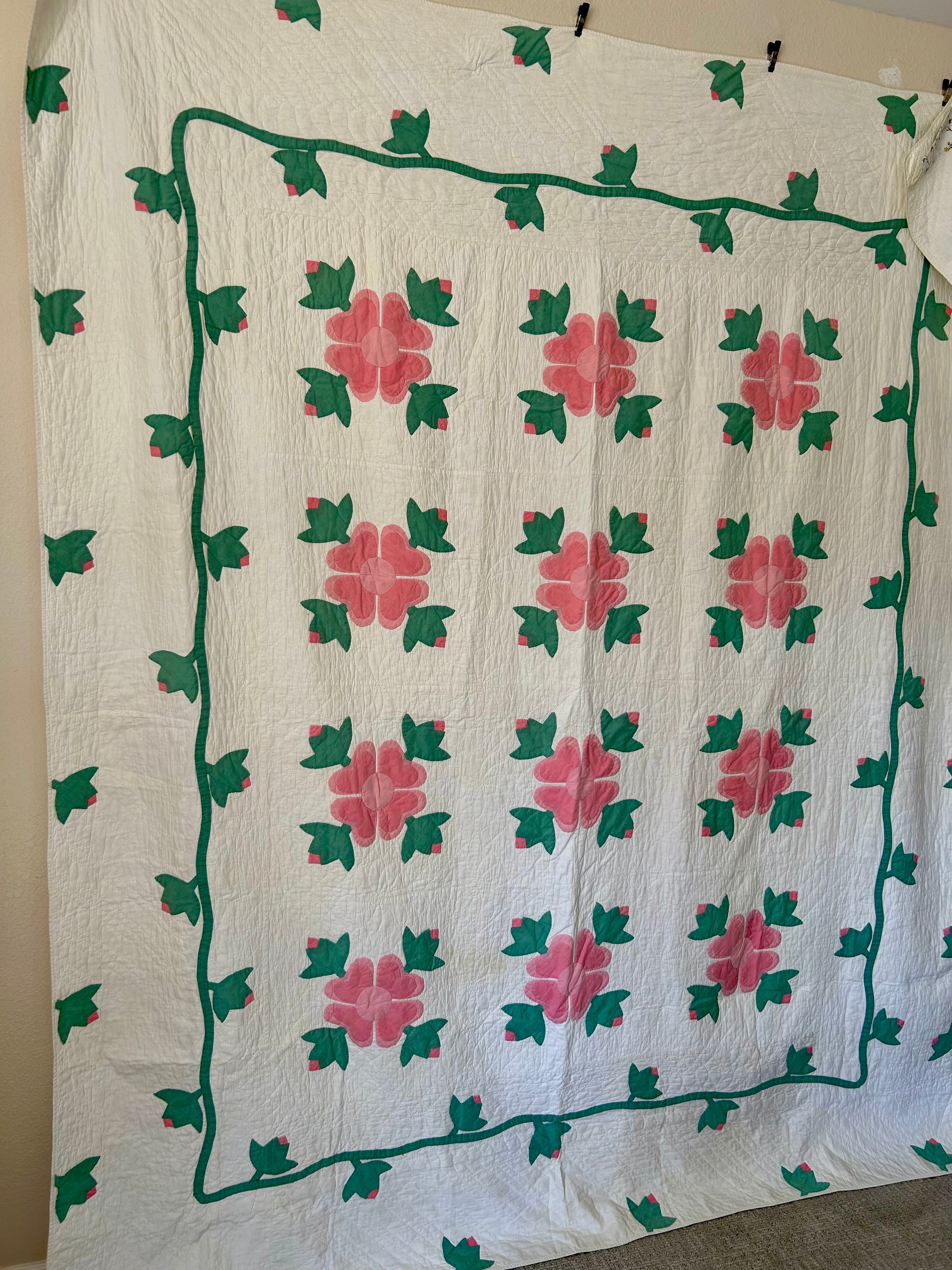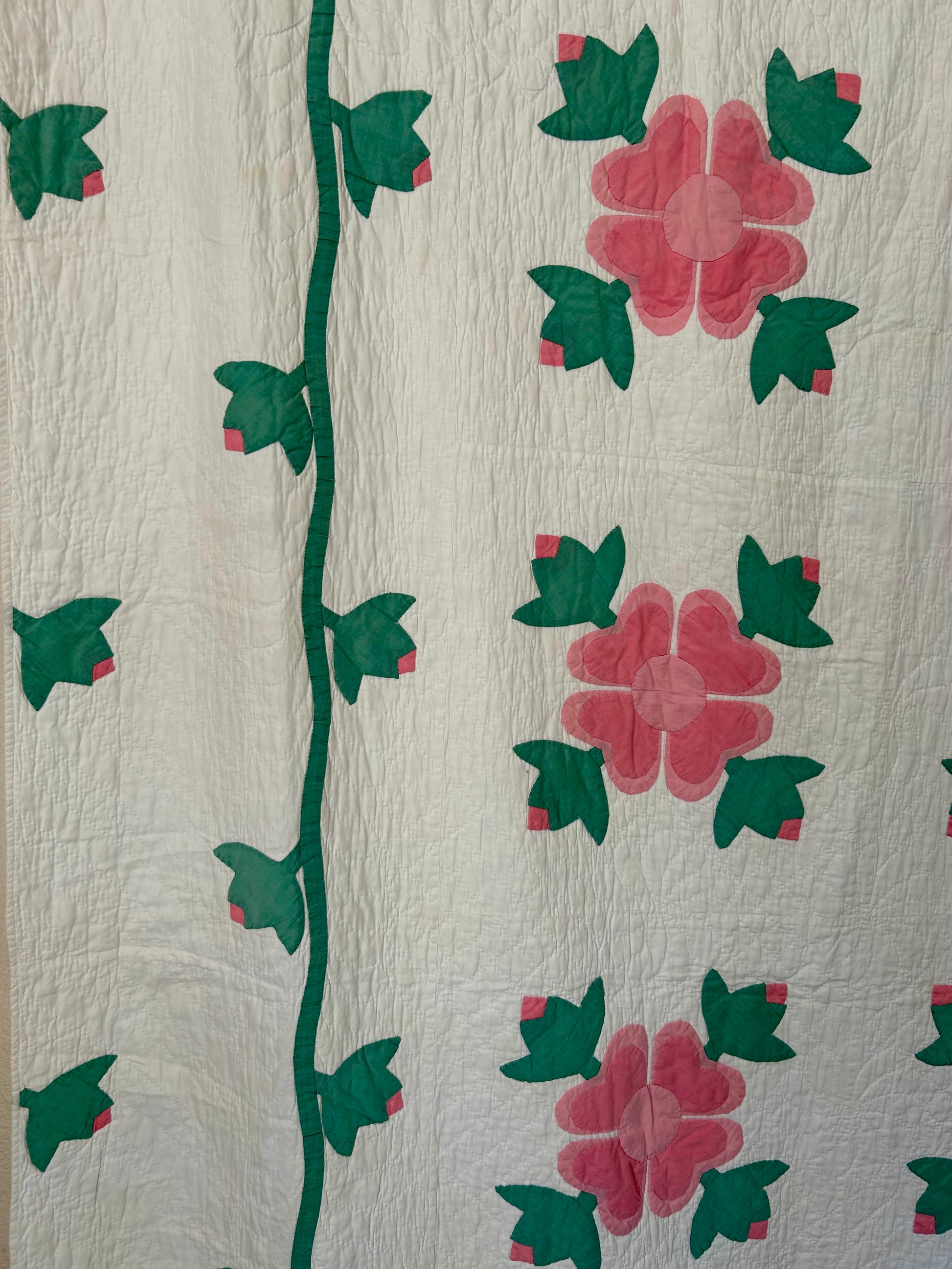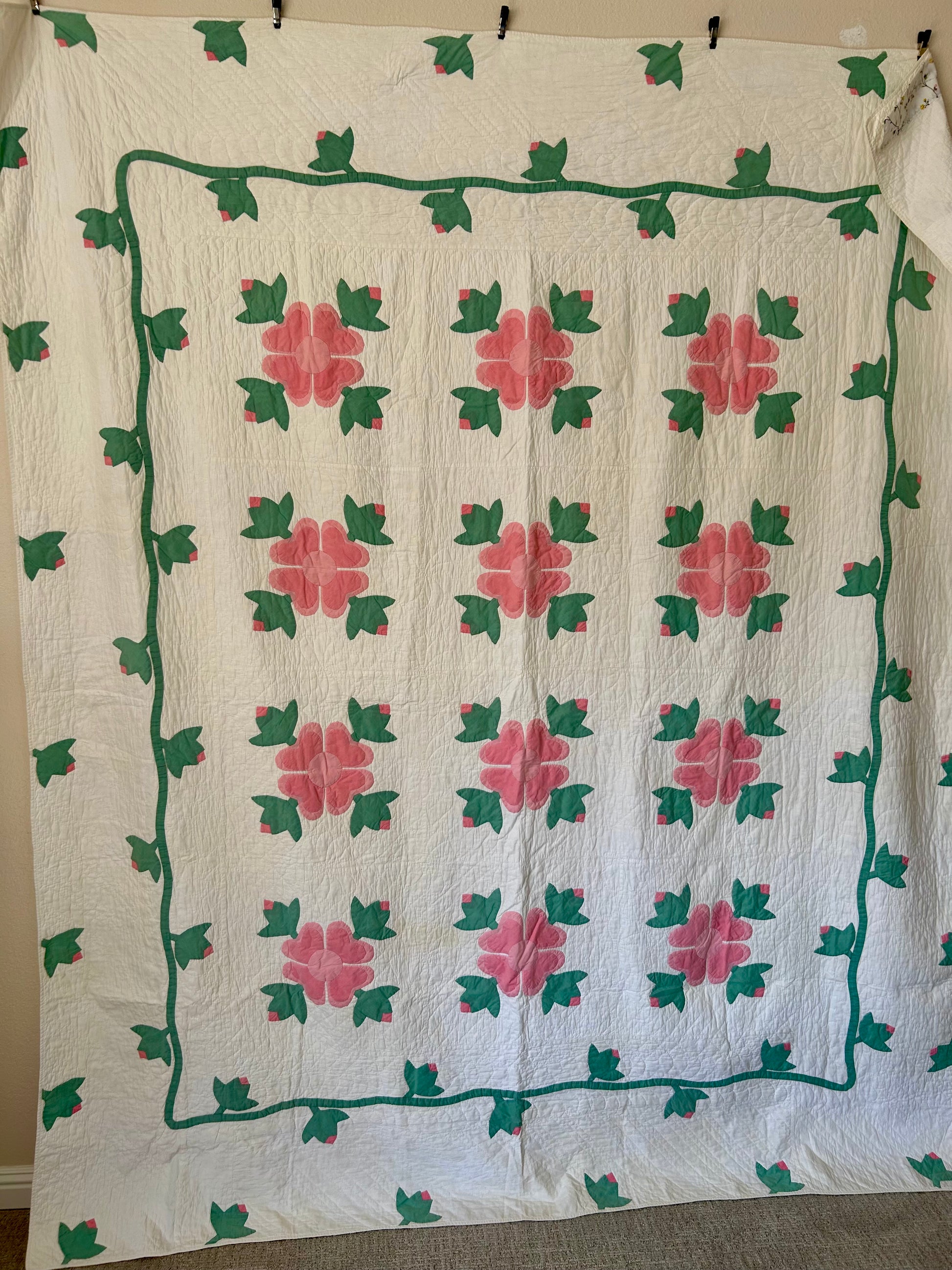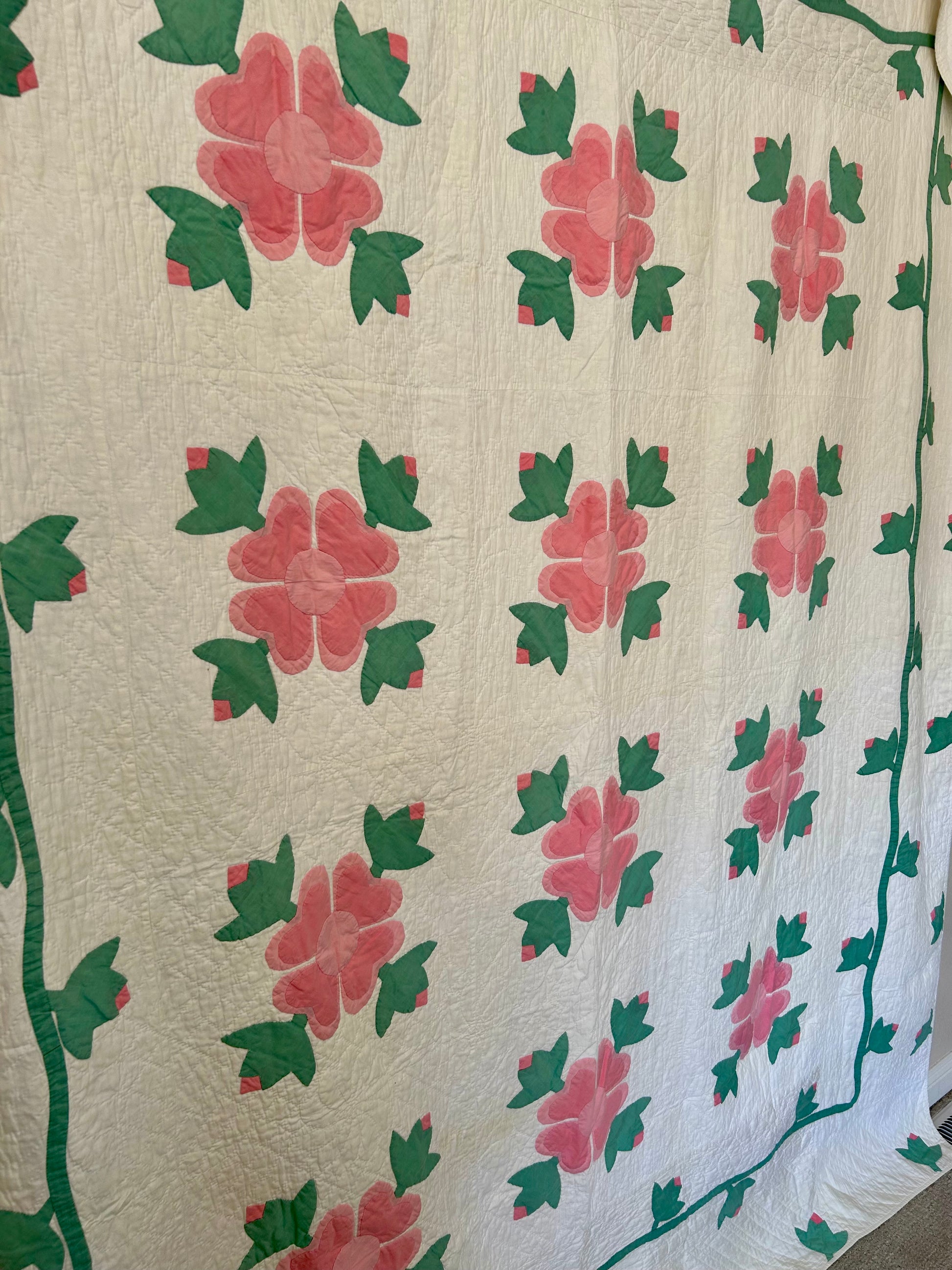 Pink Rose of Sharon Quilt | 1924, Queen, Hand & Machine Stitched