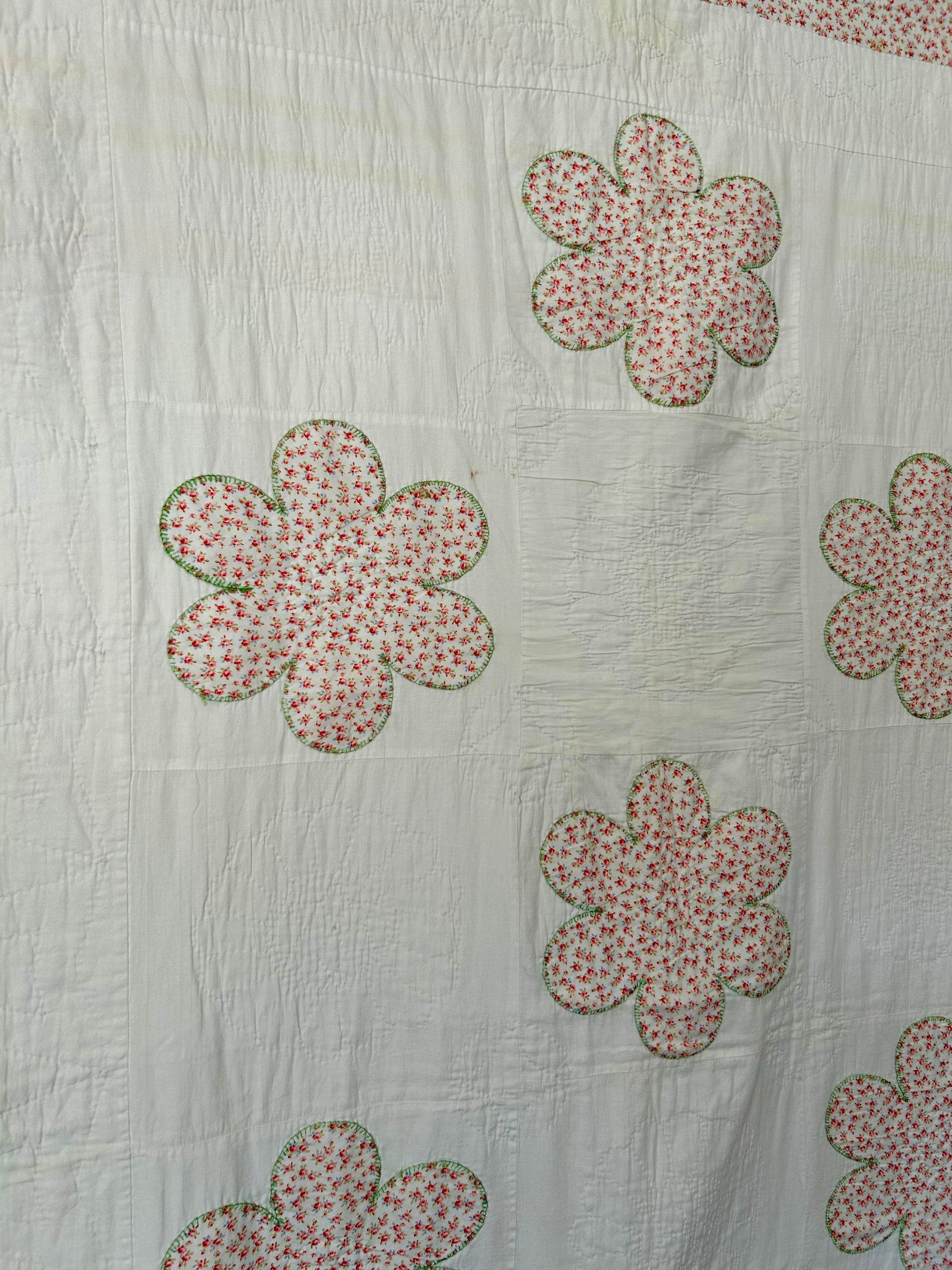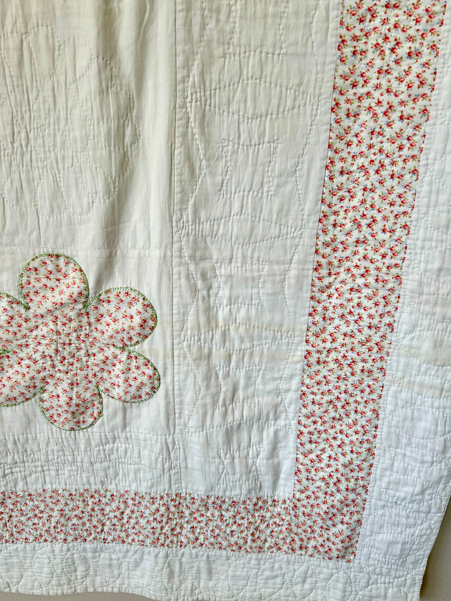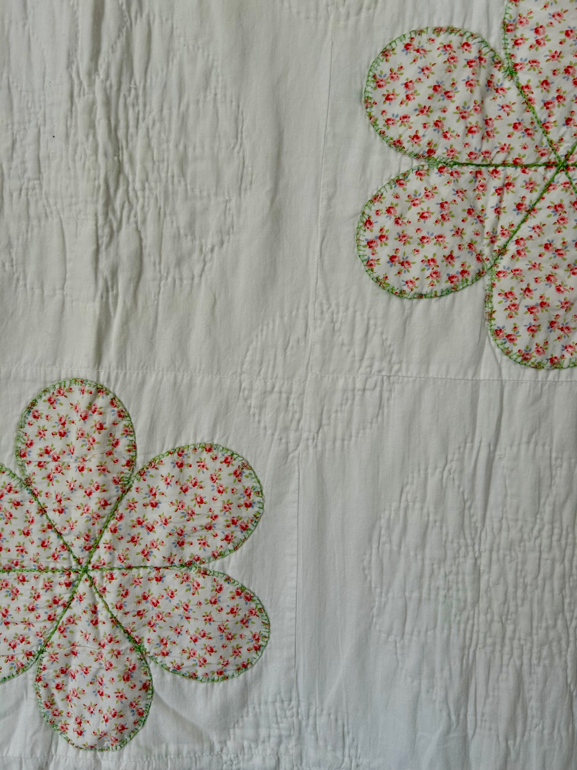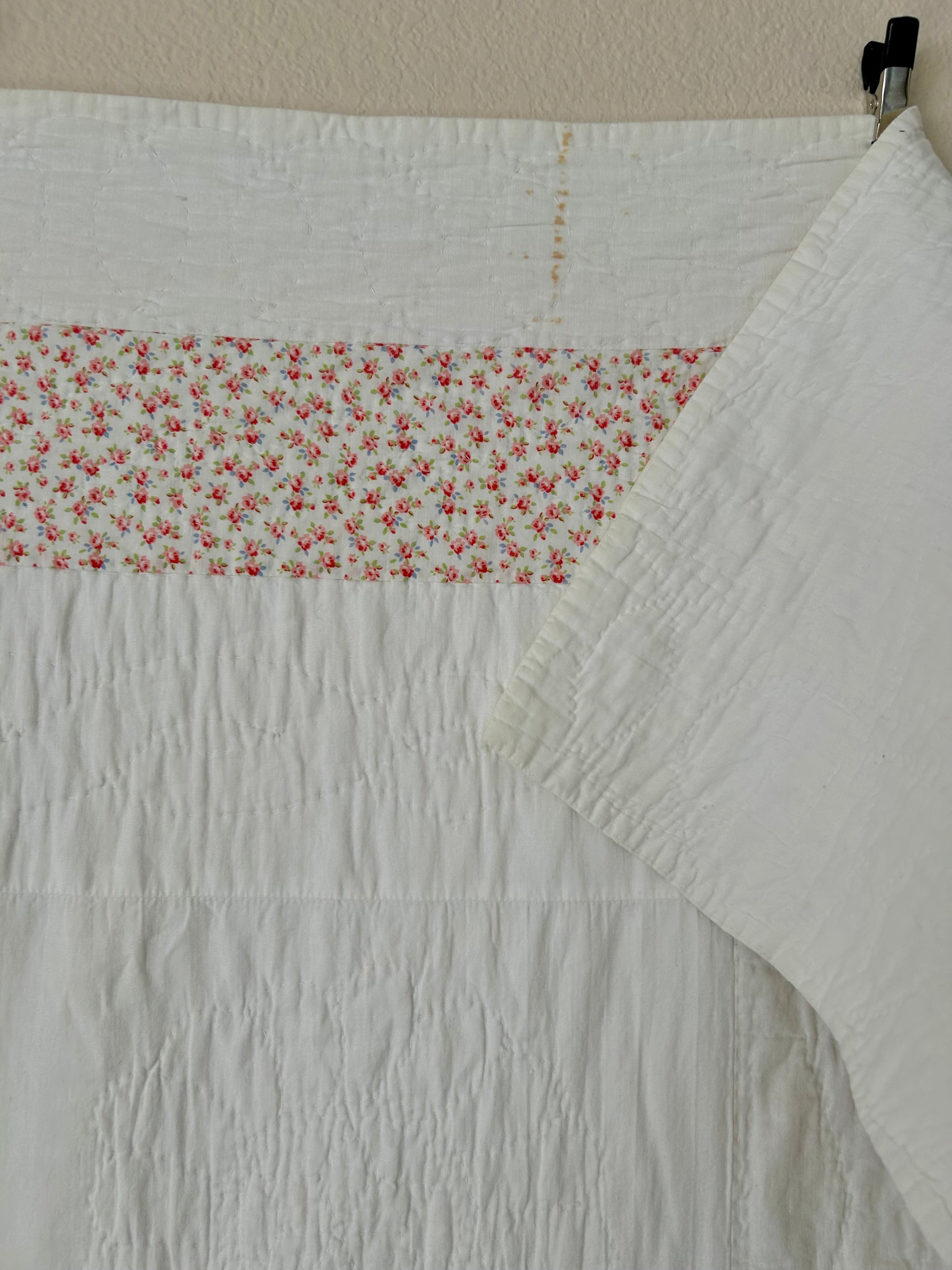 Twin Floral Quilt Set | 1990s | White, Pink & Green, Shabby Chic