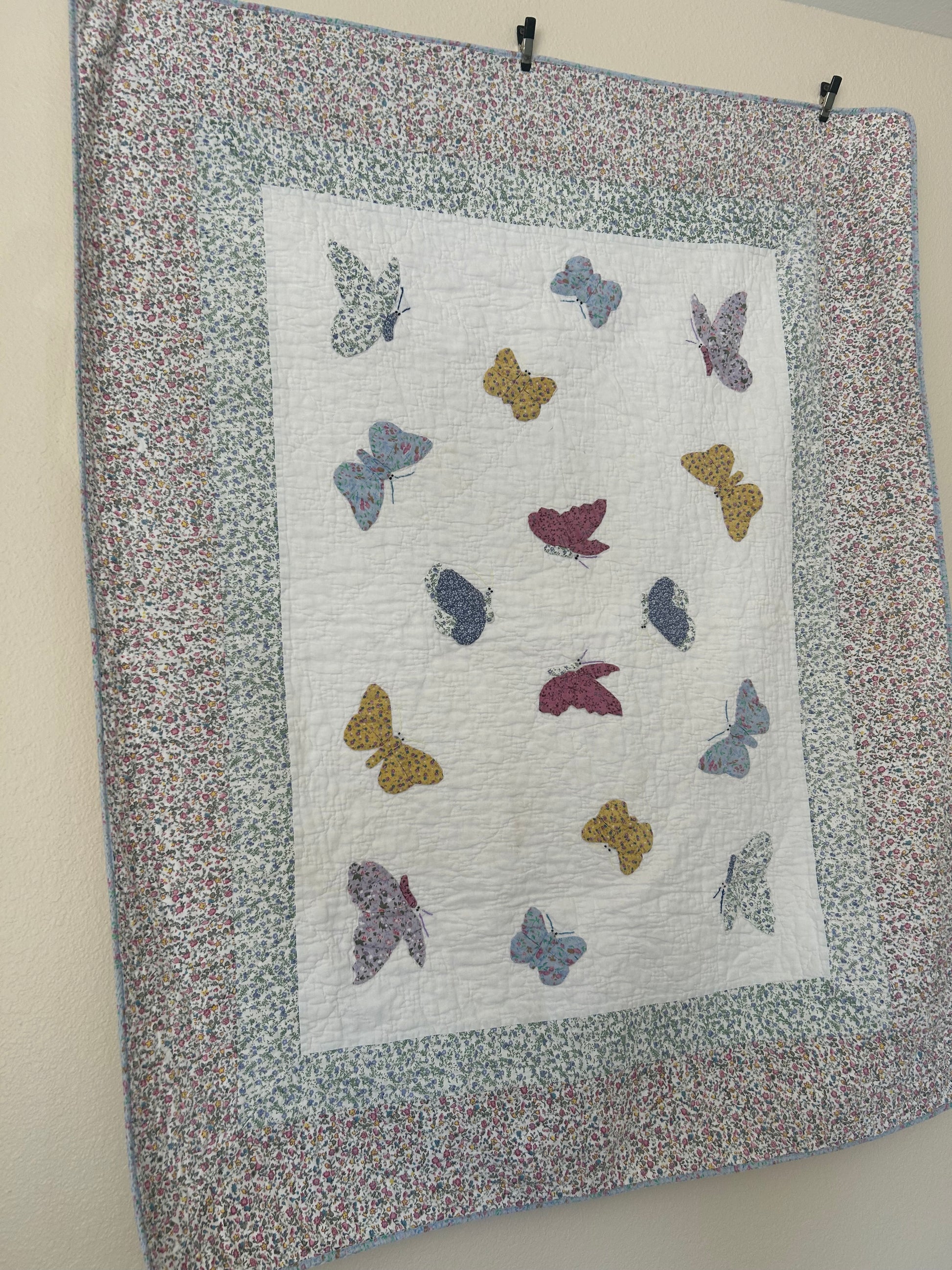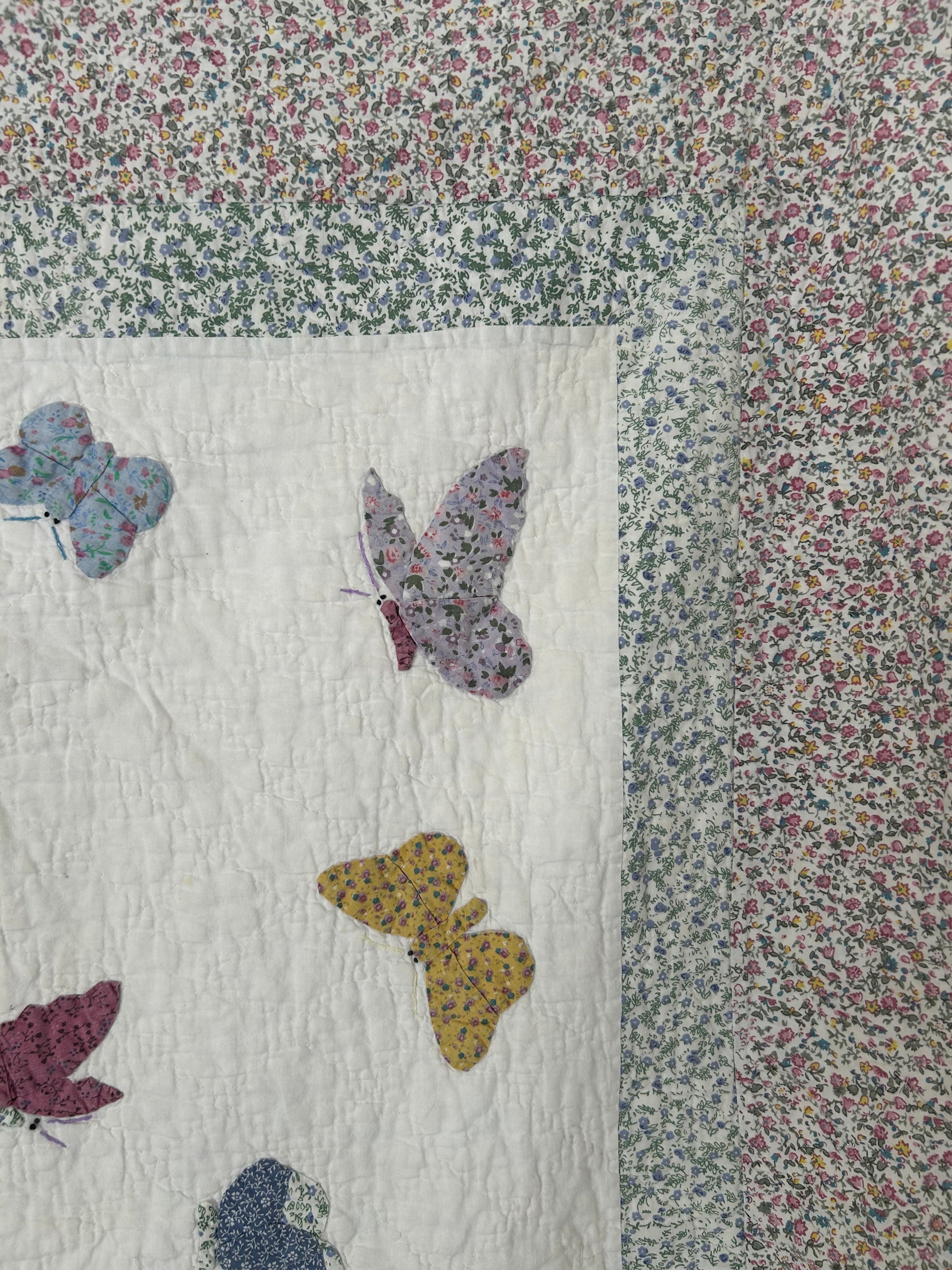 Vintage Butterfly Applique Crib Quilt