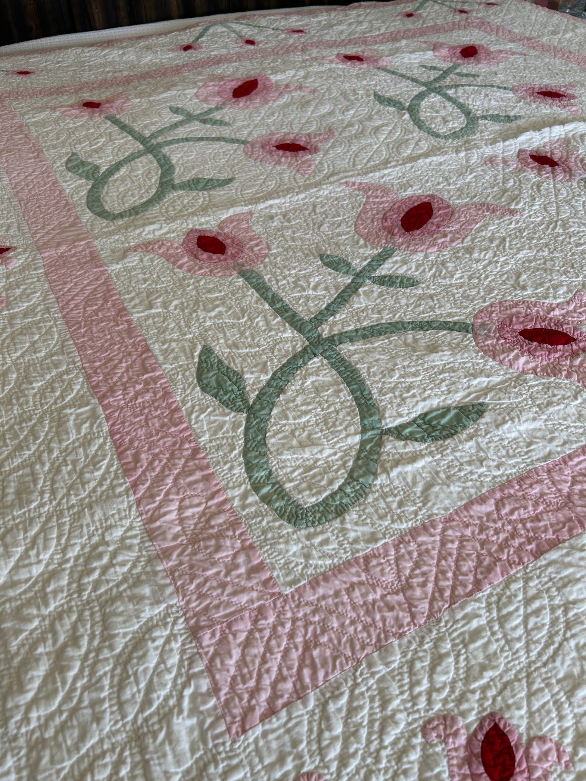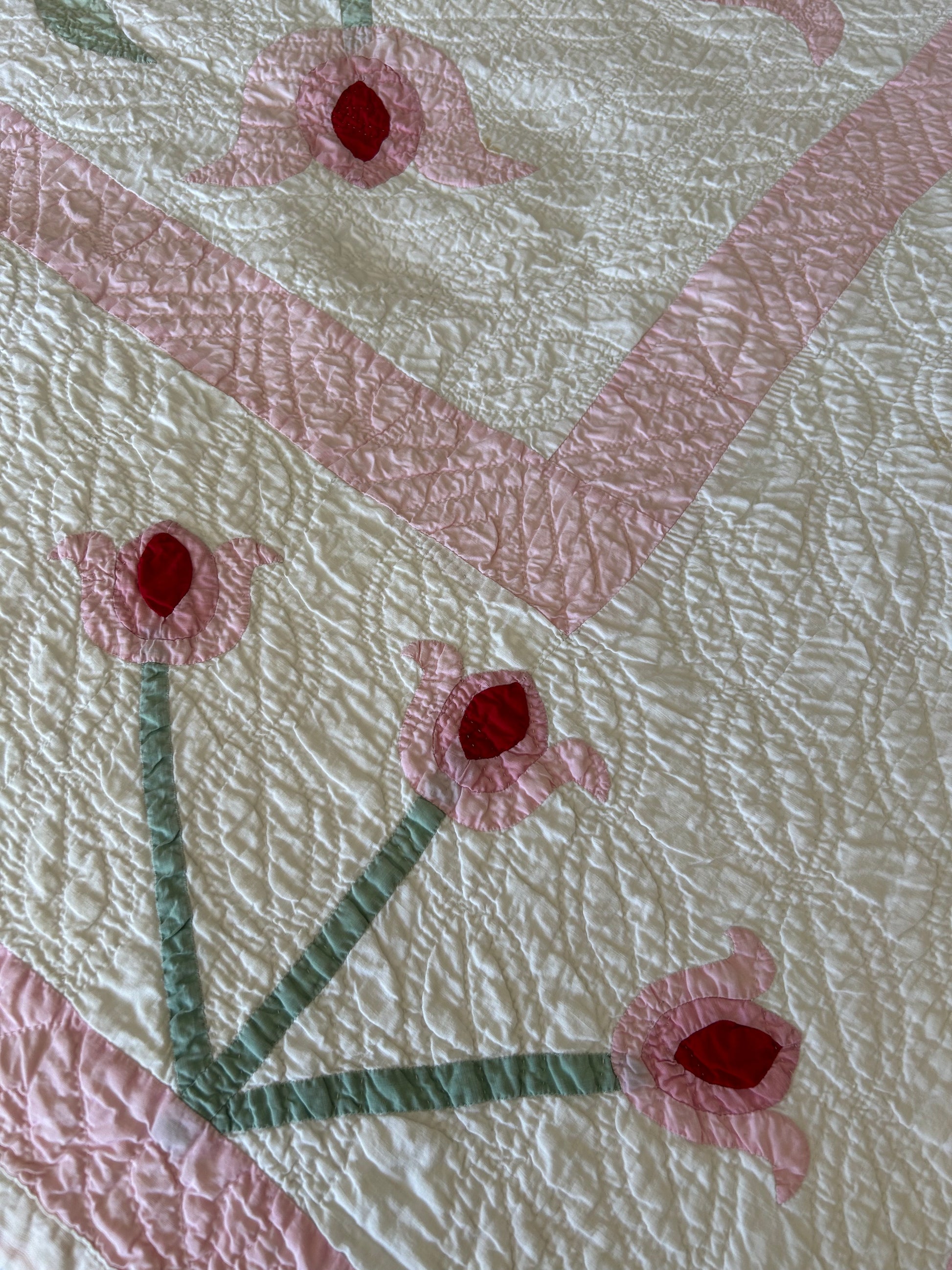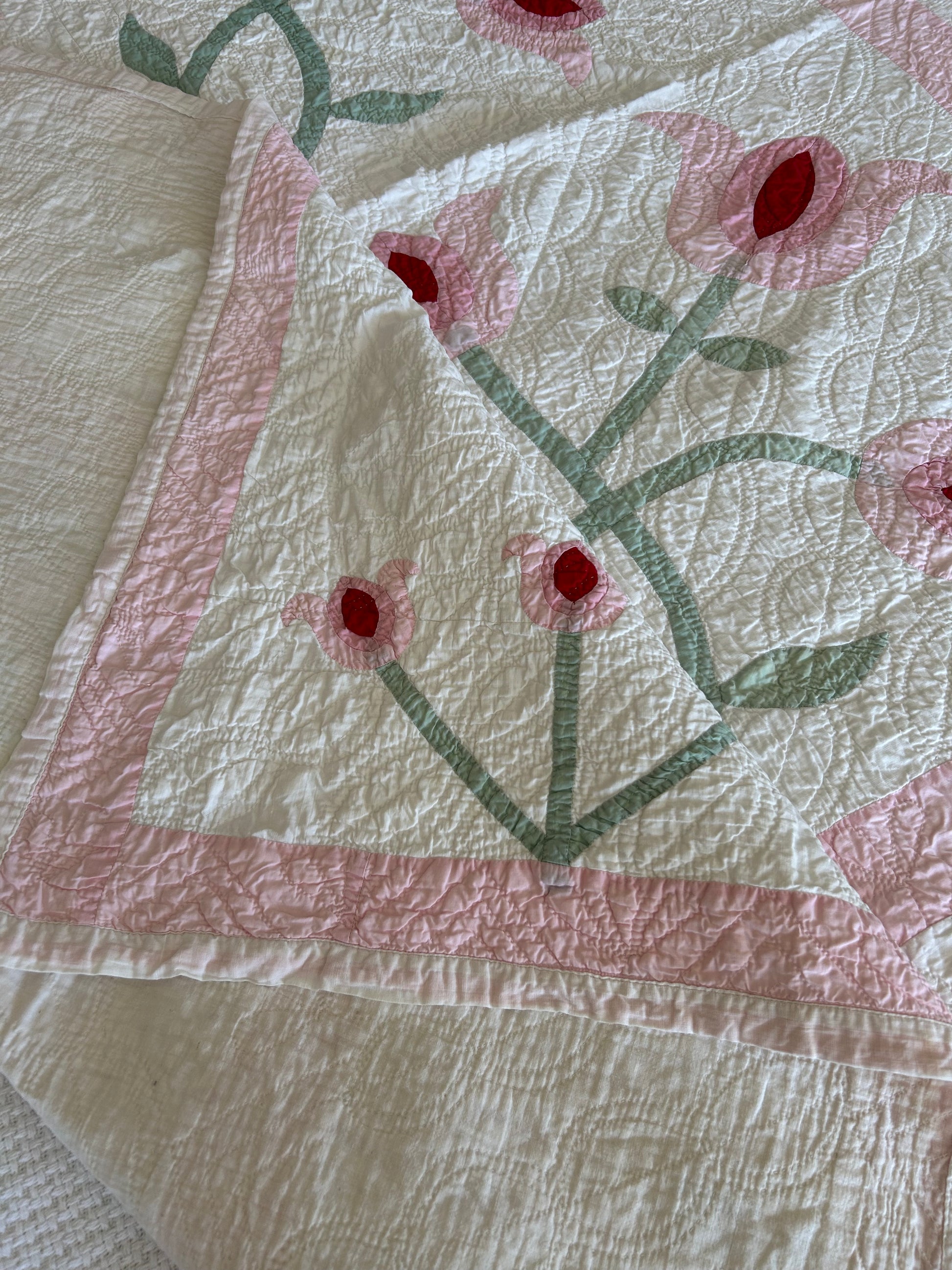 Vintage Pink Tulip Appliqué Quilt