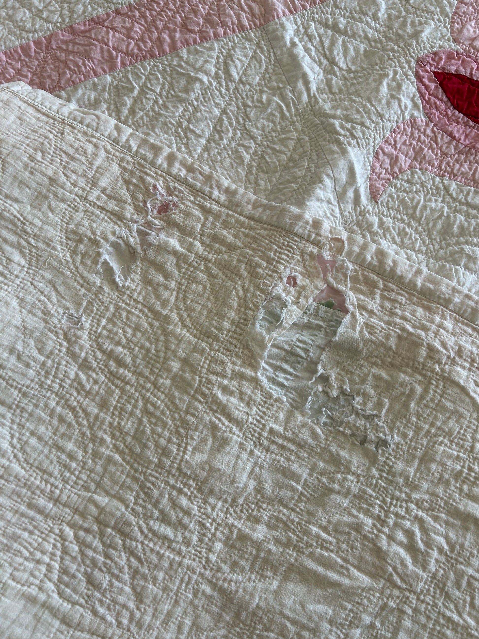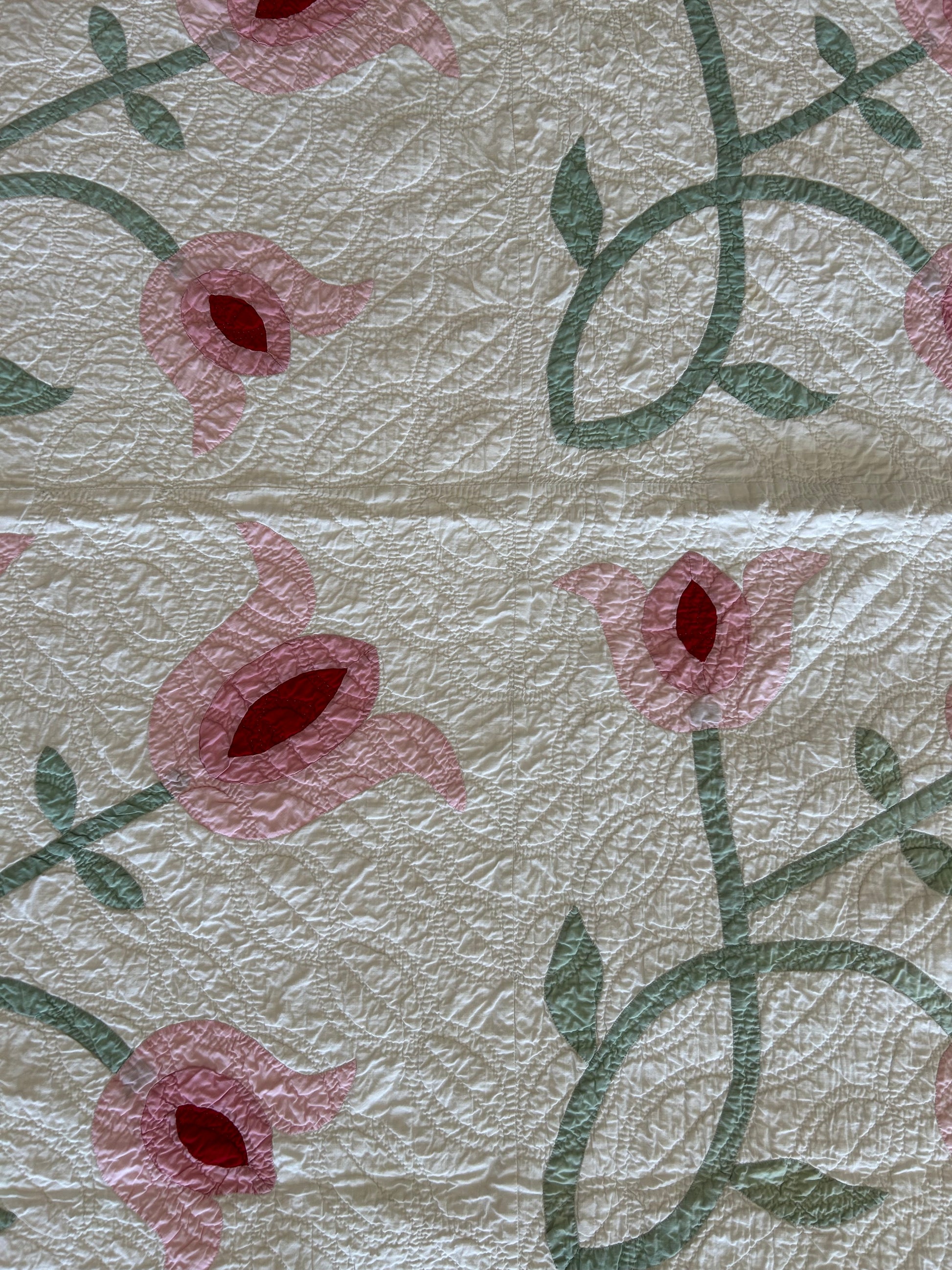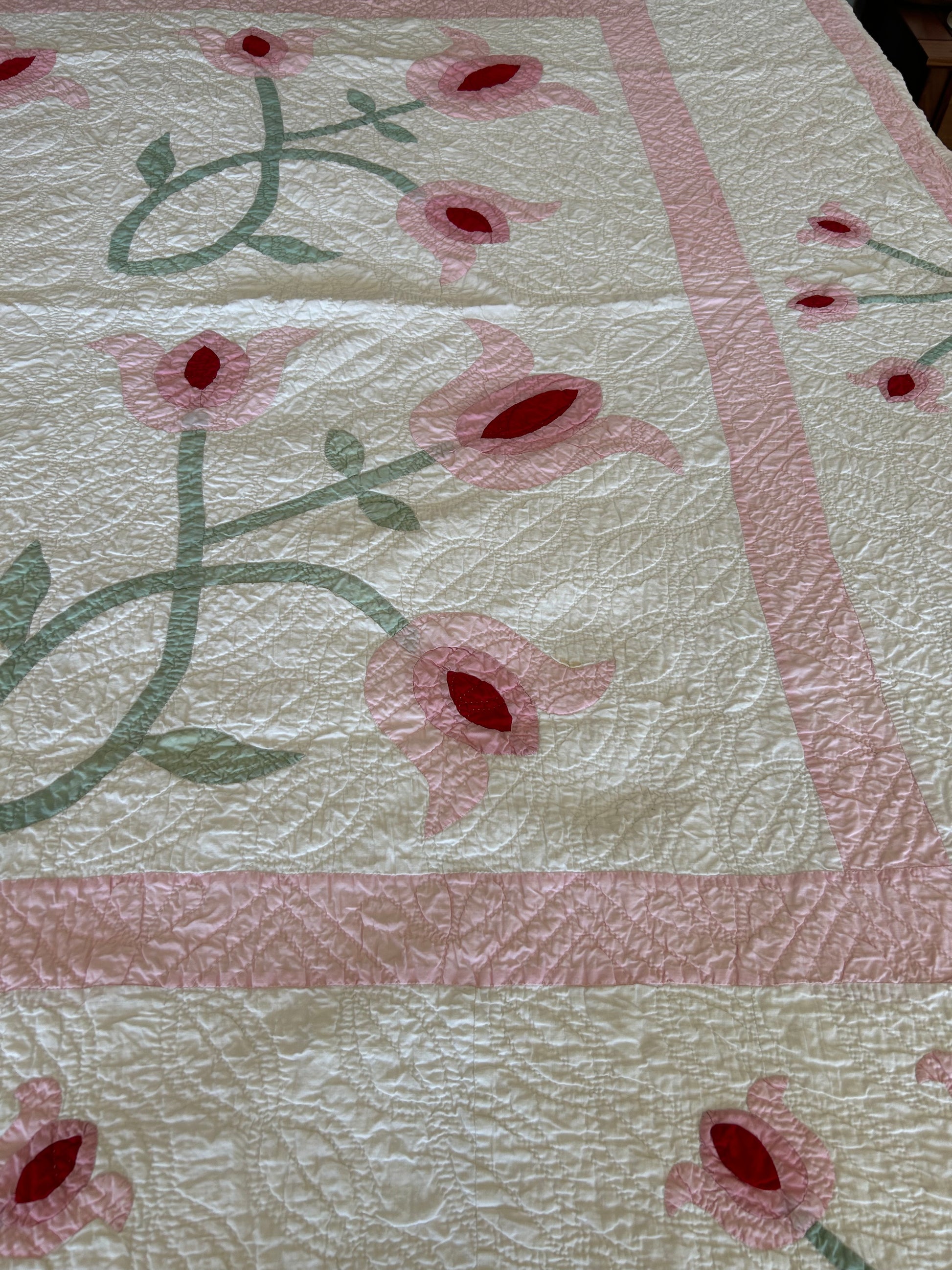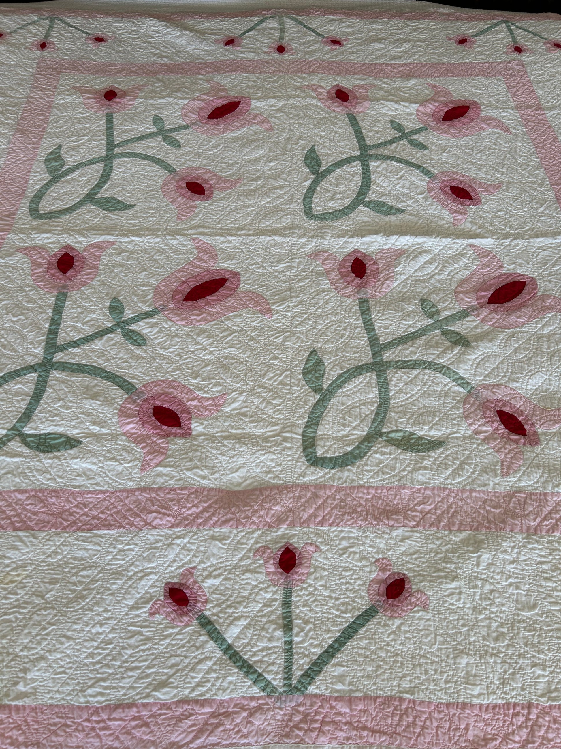 Vintage Pink Tulip Appliqué Quilt